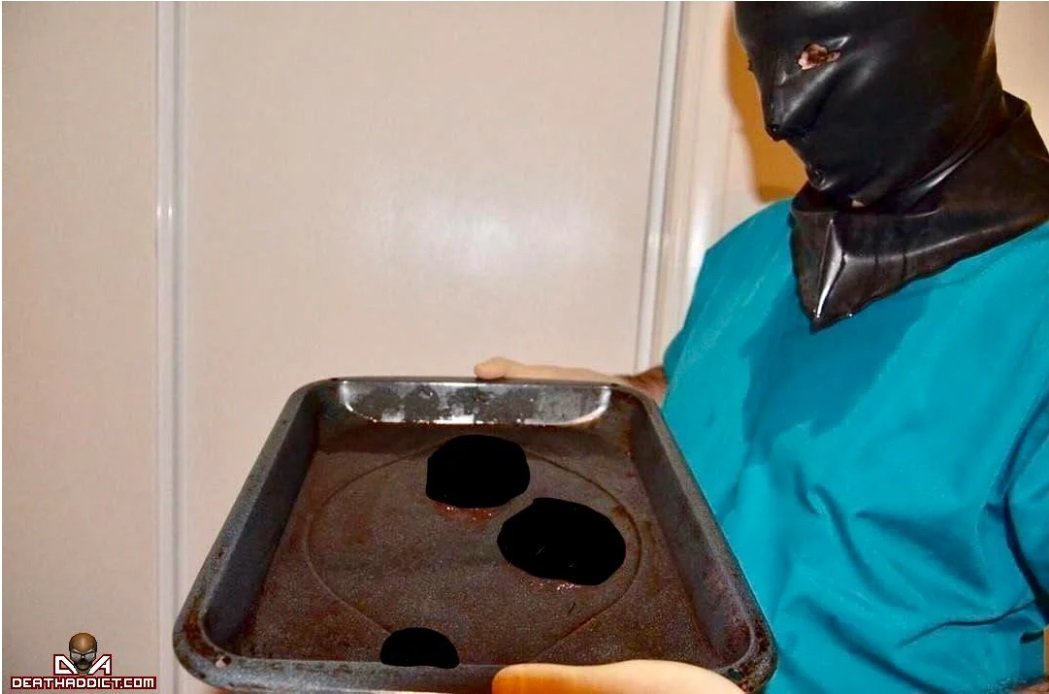 All of the photos show the same man, dubbed "Dr. Gloves" for the surgical gloves he wears in most of his photos. There have been some murmurings that his name is Edvin Balyans, although I highly doubt this for reasons I'll get into shortly. The majority of photos show his arms and hands wearing surgical gloves, although a few of the photos show his body from the neck down. In the photos showing his head, he is wearing a black rubber mask (a gimp mask?).